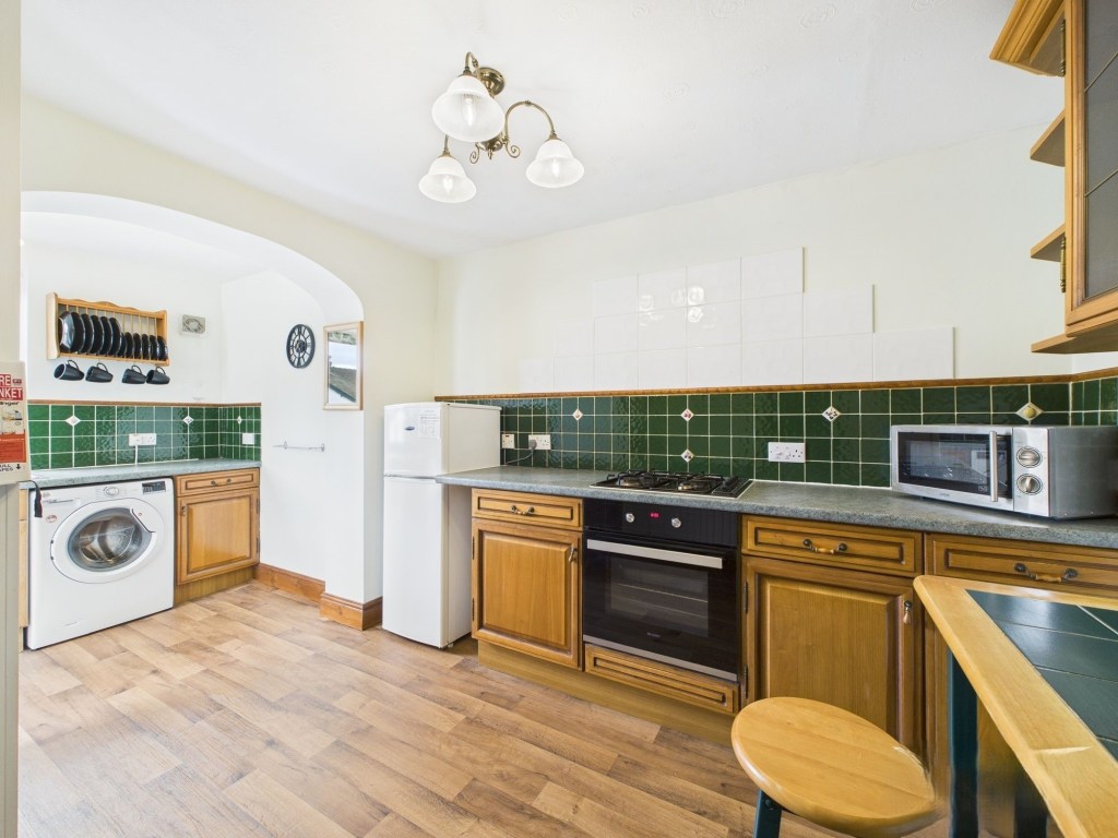 The kitchen is well equipped with a small dishwasher, washing machine, fridge with half size freezer above, a microwave and a gas hob and electric oven. There is a small table and chairs in the kitchen as well as a new central heating boiler.